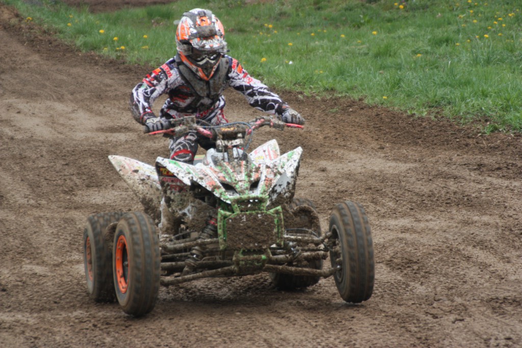 So schlecht wie der junge Schwarzenbacher Christopher Gnan in die neue Saison der Quadrennserie Bavarian-Quad-Challange startete, so gut liefen die folgenden beiden Läufe. Im ersten Lauf wegen defektem Fahrzeug auf Platz 12 gelandet, im zweiten Lauf mit Volldampf auf den ersten Platz und am vergangenen Sonntag in einem harten Zweikampf wieder den Sieg eingefahren. Am Samstag beim Zeittraining lief es nicht zufriedenstellend und Christopher konnte sich nur den siebten Starplatz der 18 angetretenen Startern sichern. Schon in der ersten Kurve lag er auf Platz 2. Nach ca. 5 min des 30 minütigen Rennens ging der Schwarzenbacher in Führung welche er auch nicht mehr hergab.