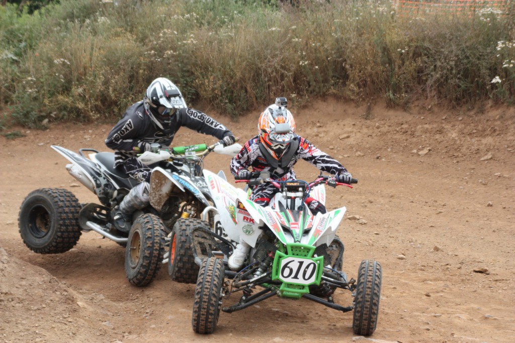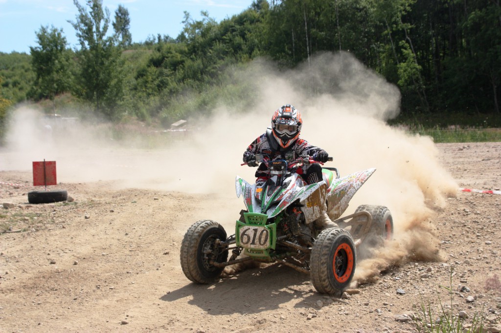 In der Nähe von Wolfsburg fanden wir eine anspruchsvolle aber auch abwechslungsreiche Strecke mit Baumstämmen, Reifen, Sprüngen, schnellen Passagen wo man das Quad im langen Drift aber auch bei Höchstgeschwindigkeit betreiben konnte. Am Samstag hatten wir die Möglichkeit uns die Strecke bei den beiden Trainingsläufen einzuprägen. Christopher fühlte sich schnell auf der Strecke wohl und setzte sich dann auch an die Spitze der Trainingszeitenliste bei den Youngstern. Am Samstag um 15.15 Uhr fiel dann der Startschuß. Christopher hatte einen sehr guten Start und führte das Feld sofort an. Nach einer halben Stunde konnte er als Erster die Ziellinie überqueren.