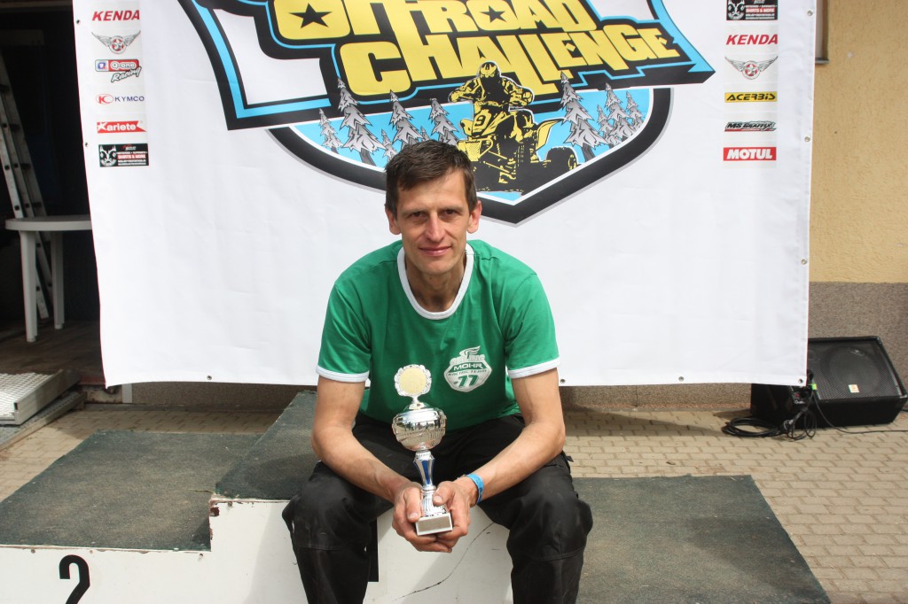 Das vierte Rennwochenende fand auf der Strecke des MSC Pflückuff bei Torgau/Neiden statt. Hier fand man wie gewohnt ein riesiges Endurogelände vor welches alles beinhaltet was das Herz begehrt. Zu Christophers Lieblingsstrecken wird wohl Torgau nie gehören, aber er konnte zumindest schon mal im Training zeigen, daß hier ein Podiumsplatz drin sein kann. Nach einem nicht so glücklich verlaufenen Start und leichten Überholproblemen konnte sich Christopher nach Halbzeit den dritten Platz erarbeiten. Platz zwei wäre aus eigener Kraft nicht mehr möglich gewesen. So fuhr er auch über die Ziellinie, wurde aber dann als zweiter gewertet da Fillip Koutecky der vor ihm über die Linie fuhr keine Killswitchsicherung angelegt hatte und disqualifiziert wurde.