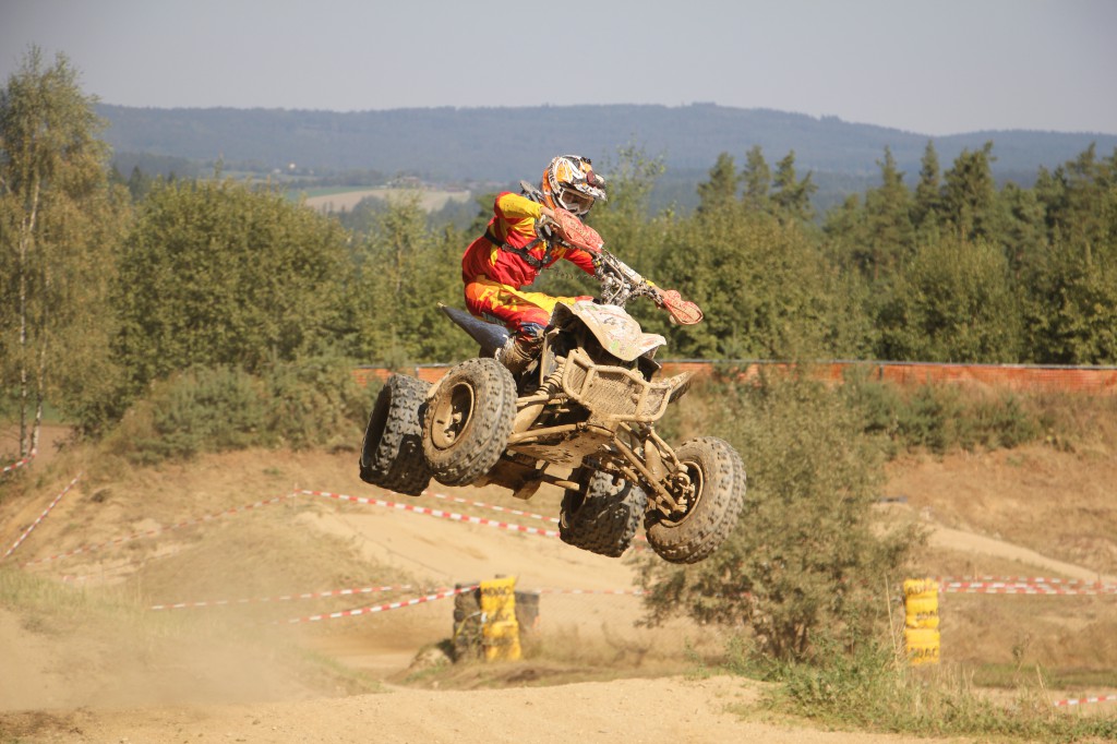 Letztes Wochenende holte sich der Schwarzenbacher Christopher Gnan erneut den Titel Deutscher Meister. Nachdem die Saison 2014 im April leider alles andere als zufriedenstellend aufgrund eines technischen Problems begann und er nur den vorletzten Platz belegte, hat sich das Blatt doch noch gewendet. Voller Motivation und Eifer nach diesem verpatzten Start in die Saison begann mit dem zweiten Rennen im Mai eine rasante Aufholjagd. Läufe 2. und 3. stand er ganz oben auf dem Treppchen. Darauf folgten die Plätze zwei und sechs. Rennen für Rennen holte er sich die Führung in der Meisterschaftswertung zurück. Mit nur einem Punkt Vorsprung ging es zum sechsten und letzten Lauf in das tschechische Marienbad. Hier ging der Schwarzenbacher von Startplatz eins ins Rennen. Nach einem 30 minütigen Kampf überquerte er die Ziellinie als Dritter. Sein stärkster Konkurrent Matje Seidl aus Tschechien belegte den 5. Platz und somit konnte Christopher die Meisterschaft für sich entscheiden. Voller Freude wurde der Nachwuchsracer von seiner Familie und extra angereisten Freunden gefeiert. Jetzt ist Zeit die Quads wieder auf Vordermann zu bringen um im kommenden Jahr wieder voller Kampfgeist die Strecken zu rocken.